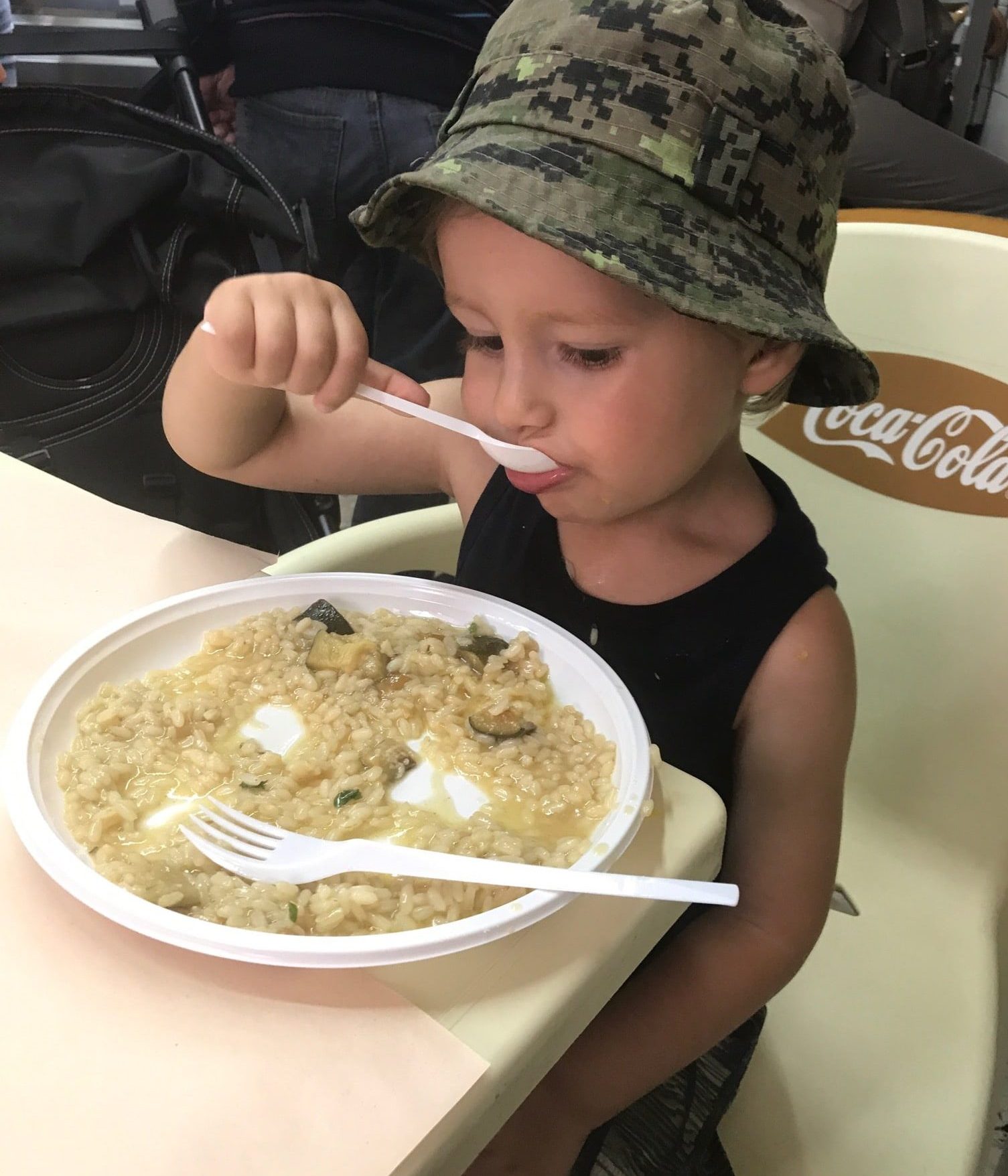 In the middle of the market you will find a local little lunch place. It’s just a hole in the wall and I couldn’t figure out the name but apparently, it’s been in business since 1910. It’s located around via Pardo 4. They serve super simple, cheap lunch of different kinds. That day you could choose between roast chicken, melanzana parmigiana, arancini with ragu, tortelloni and seafood risotto. Portions are generous and cost around 4-6 euros. The chef is this old lady who seems to be running the place together with her son. The local crowd was a mix of young and old people, businessmen on lunch break and workers from the market.