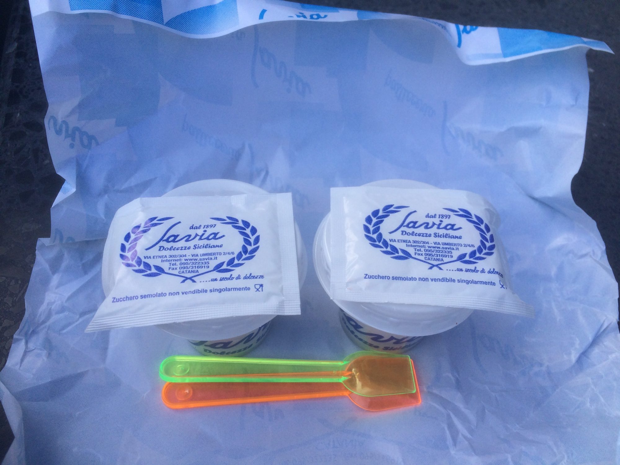 True to Sicilian tradition, I opted for a brioche (sweet buttery bun) with three types of gelato. Yes, it’s basically an ice cream sandwich, but not a flimsy scoop between two cookies – no this is a full on meal. All flavors based on Sicilian products and with a rich and amazing flavor.