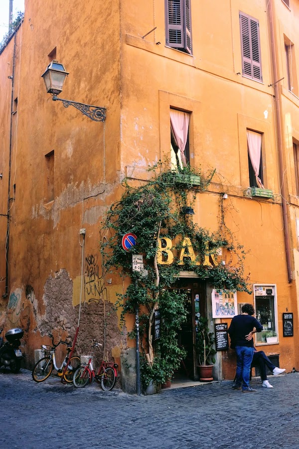 Trastevere is our favorite neighboorhood in Rome. Small couple stoned streets, colorful beautiful houses, many covered with green plants, and flowers. So many nice things to look at and places to hang out at; The stairs around the fountain on Piazza di Santa Maria is just one among many great spots for a break.