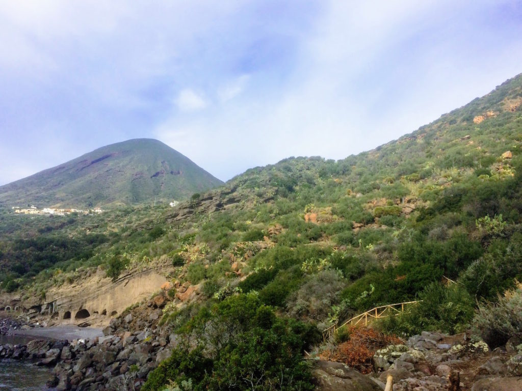 The original beach in Pollara is closed because it’s been suffering from erosion. There are a paved path and stairs carved out in the rocks leading down the mountainside and from here is a great view of Pollara bay.